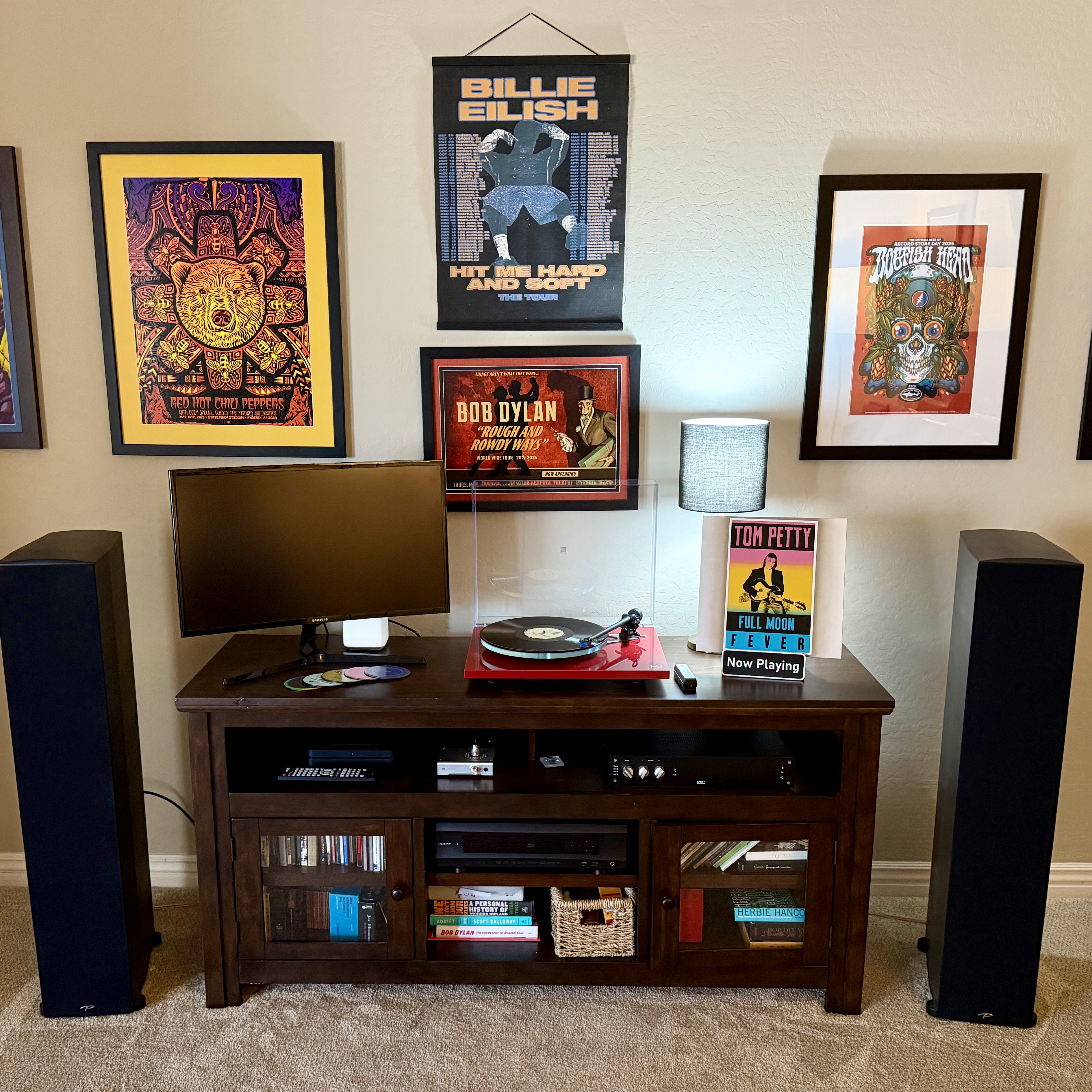 Paradigm Premium 800F speakers, Bluesound Node streamer (Tidal), Croft Acoustic Phono Integrated amplifier, Rega P3 turntable (stock cartridge), Schitt Vali 2 headphone amplifier, Oppo 105D Blu-ray (for digital media), and DROP.com + HiFiMan HE5XX Planar Magnetic Headphones