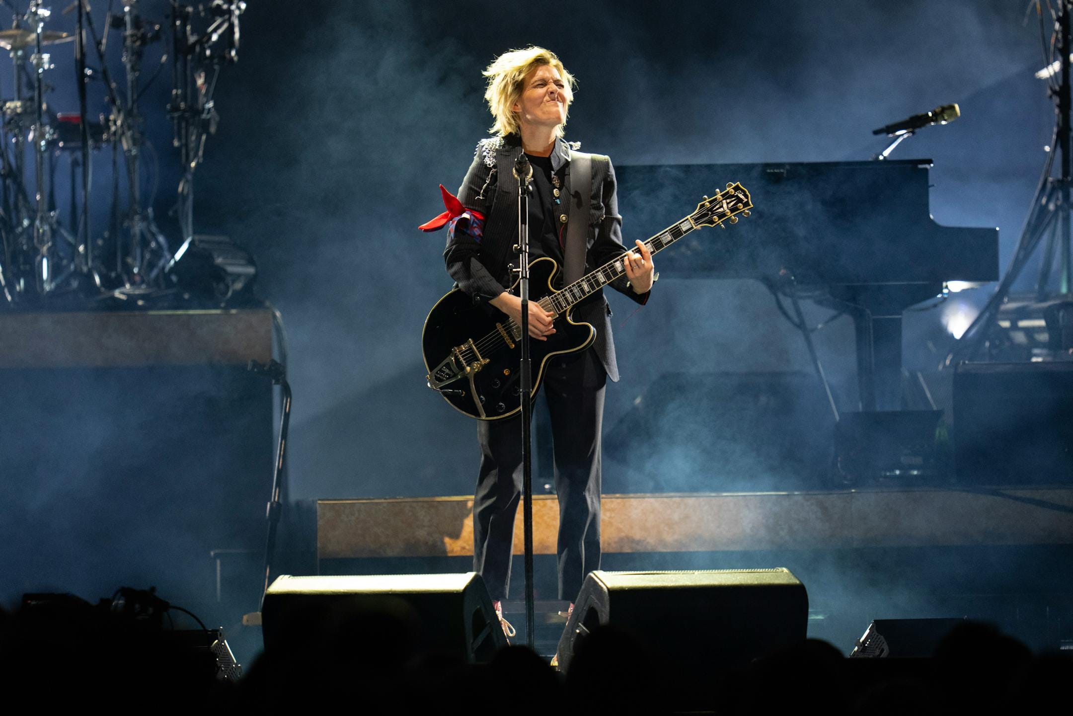 Brandi had a nice set list (see below), and she had a great ending: her traditional closing tune, “A Long Goodbye,” followed by an a cappella rendition of Bob Dylan’s “Girl from the North Country” in total darkness. The lights came up, and she brought out her special guests, Minneapolis’ Singing Resistance, to sing their “It’s OK to Change Your Mind.” After bows and the departure of the band from the stage, Carlile danced on stage solo to a recording of Chappel Roan’s “Pink Pony Club.” It was a very satisfying evening.