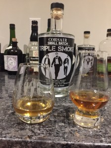 I discovered Triple Smoke a couple of years ago when our family visited the Corsair Distillery in Nashville TN. Within our family, we label this kind of spirit “brown juice” – a catch-all for whiskeys of any kind. My preference in brown juice is Bourbon and Islay Scotch – as different as sweet and sour. Triple Smoke merges my preferences into a single masterpiece.