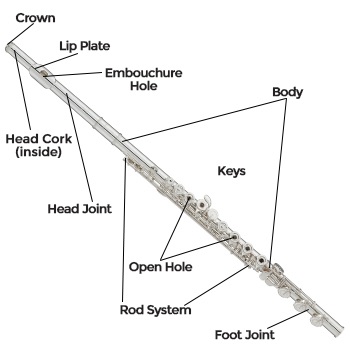 The flute is a relatively easy instrument to play once you figure out how to make a noise blowing across the embouchure hole. After that, it is memorizing fingering (see fingering chart below) and adjusting your embouchure and blow to change octaves and create effects like staccato. Below is a flute-fingering chart: