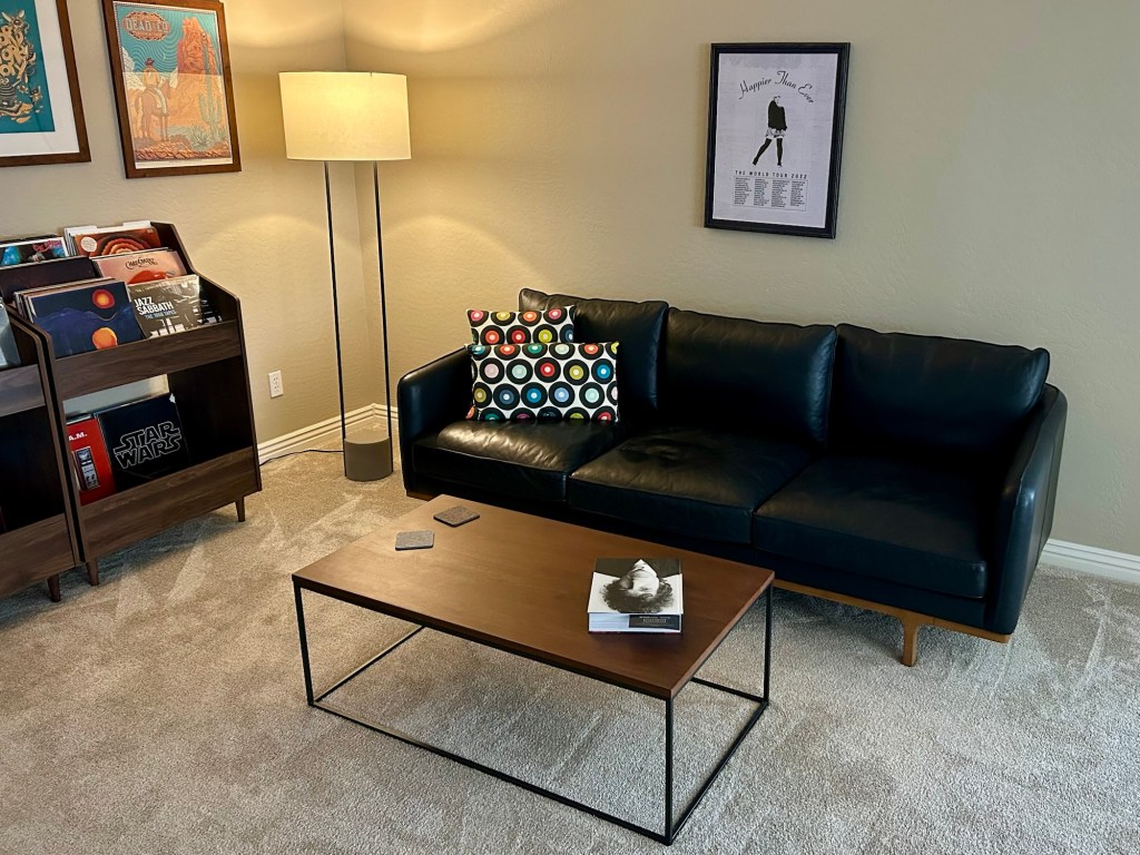 I have learned that the room is one of the most significant audio components. The best equipment can sound terrible if the room does not support the equipment. In Minneapolis, we live in an open-concept apartment-style condo. It is not conducive to playing music out loud, so I mostly listen via headphones. For the Desert 🌵 Sessions, we have a dedicated music room. The room is nearly square (13′ x 14′), carpeted, with no windows but a large opening on the left side to the rest of the home. I was concerned that the open side would allow too much noise from the rest of the house and that my music would bleed into the rest. It turned out that it was just tucked away enough to not cause noise problems either way. Because the Croft amp has separate left and right volume controls, I can do some primitive “room correction” to solve for the opening (a slightly higher volume on the right channel does the trick).