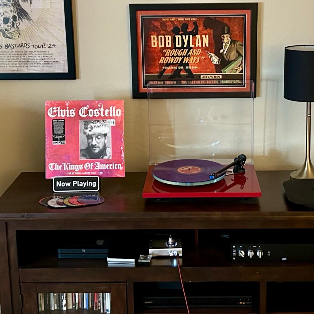 The Kings Of America Live is a seventeen-song concert recorded on January 27, 1987, at The Royal Albert Hall in London. Costello performs with some of “the Confederates” – musicians who played on the studio version of the 1986 King Of America album. The live band is: